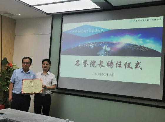 2020年05月18日,廣西華業(yè)建筑設(shè)計(jì)有限公司名譽(yù)院長——張信貴教授聘任儀式在華業(yè)建筑設(shè)計(jì)有限公司會(huì)議室隆重舉行,華業(yè)集團(tuán)董事長龍其生、副總裁兼華業(yè)建筑設(shè)計(jì)公司總經(jīng)理龐樹玉應(yīng)邀出席本次活動(dòng)并講話。  &nb..